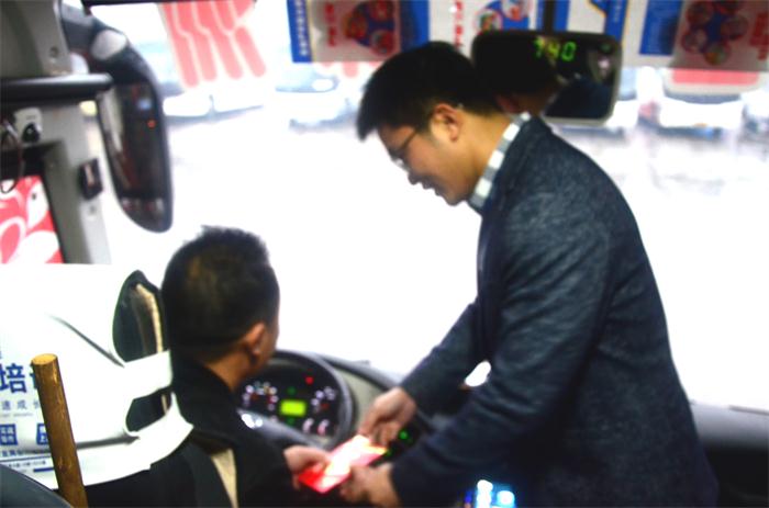 凌晨6:50時(shí),董事長(zhǎng)一行來(lái)到了長(zhǎng)途汽車站,“同志們,辛苦了,大家新年好!我給大家拜年了!”董事長(zhǎng)跟員工們一一握手問(wèn)好,向員工們送上了祝福。員工們自發(fā)的站成一排,向董事長(zhǎng)問(wèn)好,拜年。7:18時(shí),董事長(zhǎng)登上發(fā)往長(zhǎng)沙的班車,給旅客和司機(jī)送上了新年的祝福,并囑咐司機(jī)下雨一定要注意行車安全,并目送班車駛出車站。