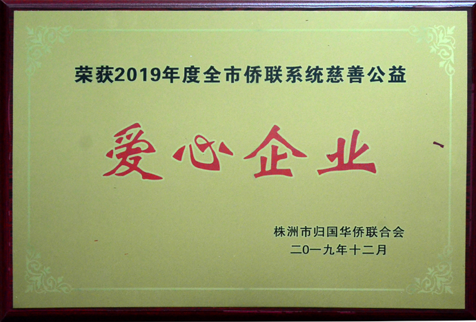 集團(tuán)公司榮獲“株洲市2019年度僑聯(lián)系統(tǒng)慈善公益愛(ài)心企業(yè)”稱(chēng)號(hào)
